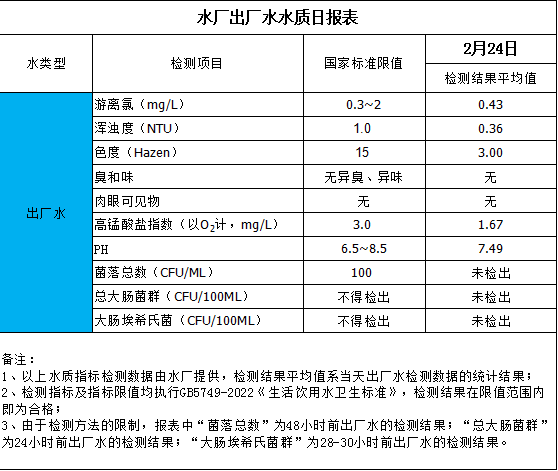 水廠出廠水水質日報表(2025-2-24)