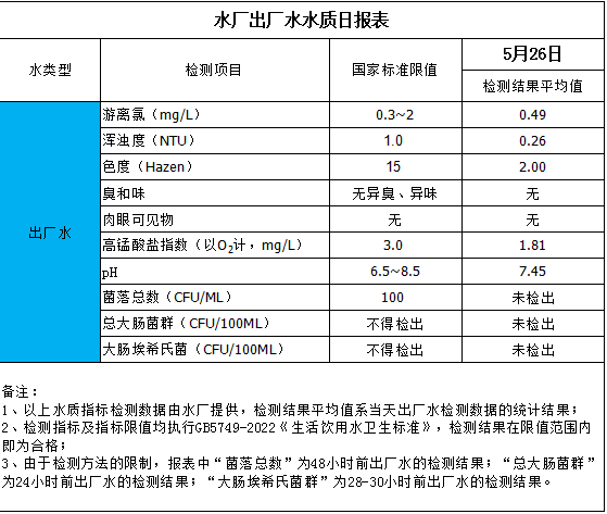 水廠出廠水水質(zhì)日報表(2025-5-26)
