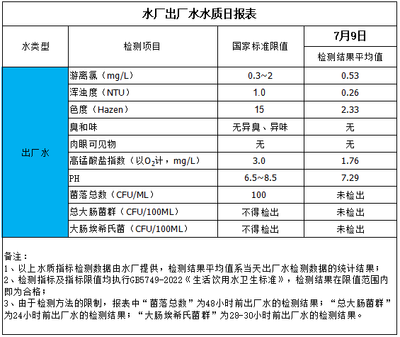 水廠出廠水水質日報表(2025-7-9)