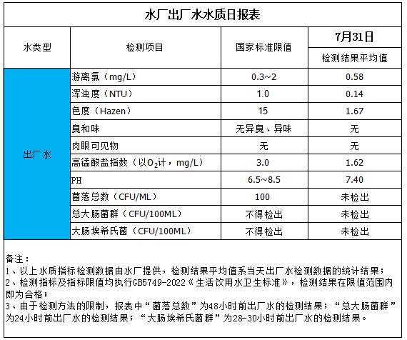 水廠出廠水水質日報表(2025-7-31)
