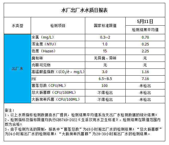 水廠出廠水水質日報表(2023-5-11)