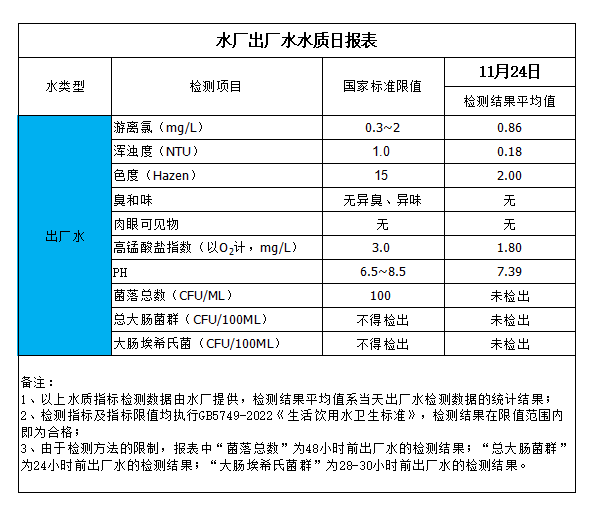 水廠出廠水水質日報表(2023-11-24)
