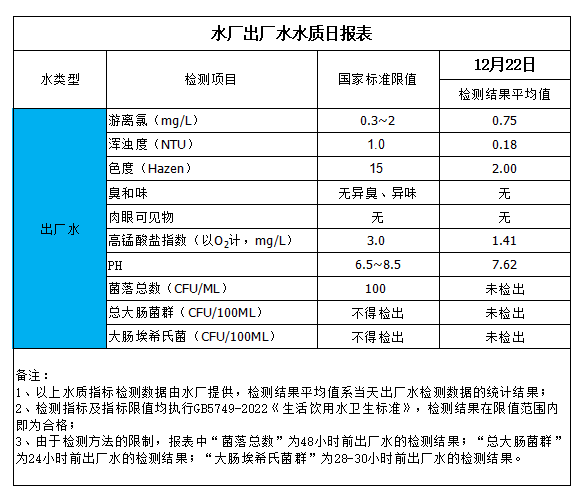 水廠出廠水水質日報表(2023-12-22)
