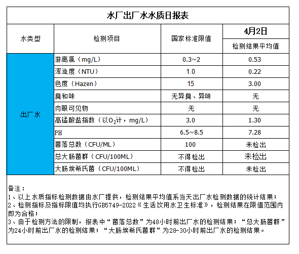 水廠出廠水水質日報表(2024-4-2)